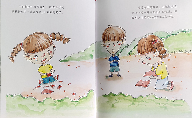 跳跳是个非常爱热闹的小朋友,每天都闹得家里天翻地覆的,不是把碗里的饭撒的一地就是,就是把好好的一张纸撕成碎片,当成雪花一样扔下来,妈妈总是拿他没有办法。有一天妈妈带她去公园玩,一个小女孩正在那里话五星红旗,跳跳跑过去就把那幅图画撕得粉碎。小女孩很伤心,妈妈也批评了他,并且给他讲了五星红旗的来历,我们为什么要爱国旗。跳跳认识到了错误,也懂得了爱护国旗。有一次在上学的路上,有人扔了一个可乐瓶子,他就捡了起来,妈妈问他为什么要把它捡起来,他因为那里面有一个国旗,我们应该爱惜五星红旗。