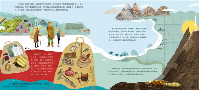 由国际儿童读物联盟获奖者、希腊国家绘本奖得主艾丽斯·萨玛尔茨创作,以绘本式的图文关系精准展现凡尔纳作品“浪漫、乐观、热情、明亮”的特质。她将插画与真实的历史照片、手稿、路线图等巧妙结合,仿佛百年前的历史背景、重大事件、故事传说历历在目,身临其境。