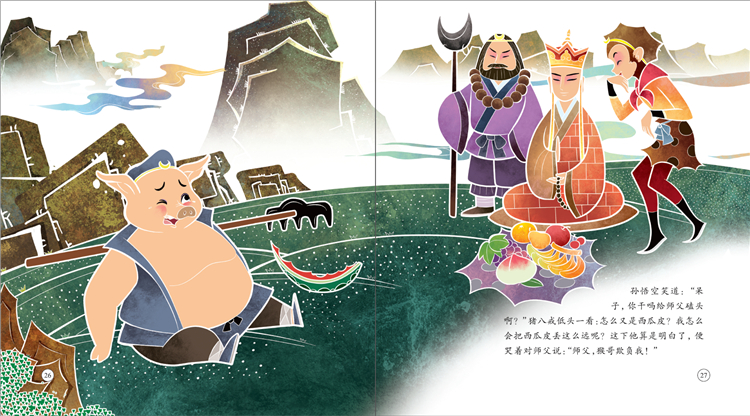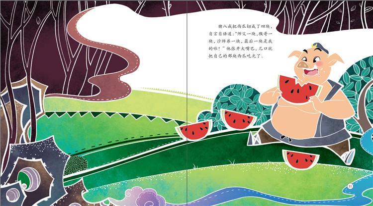 《猪八戒吃西瓜》是根据《西游记》中猪八戒的性格编写而成的童话故事,书中猪八戒好吃懒做的滑稽形象令人忍俊不禁。