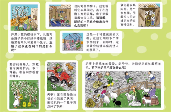 本书以翻翻书的形式,以热闹的农场为主题设置场景,为小朋友介绍了在生活中会接触到的方方面面的知识,小朋友通过翻开折页能够发现图像发生变化。旨在以轻松有趣的插图及翻翻形式,让孩子发现各种有趣的现象或知识,满足孩子的好奇心,提高孩子的学习兴趣。