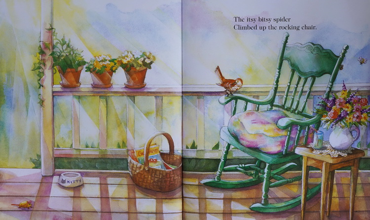这是由一首备受孩子喜爱,到处传唱的童谣,延伸而成一个奋发向上的故事。主角 ITSY BITSY凭着努力不懈的精神,不仅爬进了排水口,也顺利地钻进厨房的墙、经过水桶、摇椅、枫树…,最后终于在树上结了一张舒服的网。作者以富有韵律的词句来描述蜘蛛遇到无法预期的挫折时,仍旧选择勇往直前坚持到最后。韵文般的故事与歌谣的结合,让孩子可以随性的大声朗读,并藉由文字的韵律来感受学习时的乐趣。