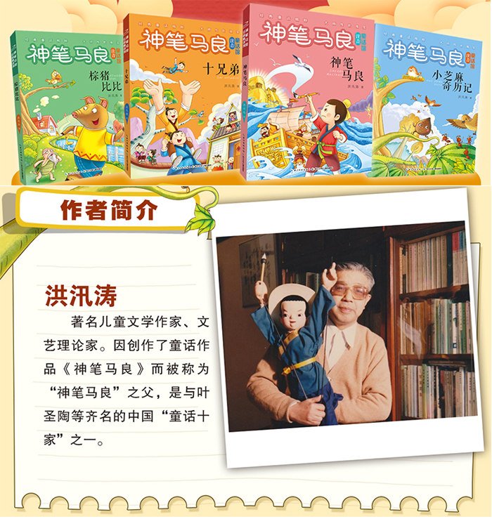 《神笔马良注音童话馆》是一套低幼类注音读物,是被称为“神笔马良”之父的著名童话大师洪汛涛的童话作品集,包括《神笔马良》《十兄弟》《棕猪比比》《小芝麻奇历记》4本,共收录了《神笔马良》《十兄弟》《夜明珠》《棕猪比比》《白头翁办报》《小芝麻奇历记》《树大王》等深受读者喜爱的近30篇童话。这些妙趣横生的童话,是滋养儿童心灵的民族文化经典,也是深受孩子喜爱的中华传世佳作,可以帮助孩子在潜移默化中学习民族文化精粹,感受中华经典魅力,提高文化素养,塑造优秀品格。