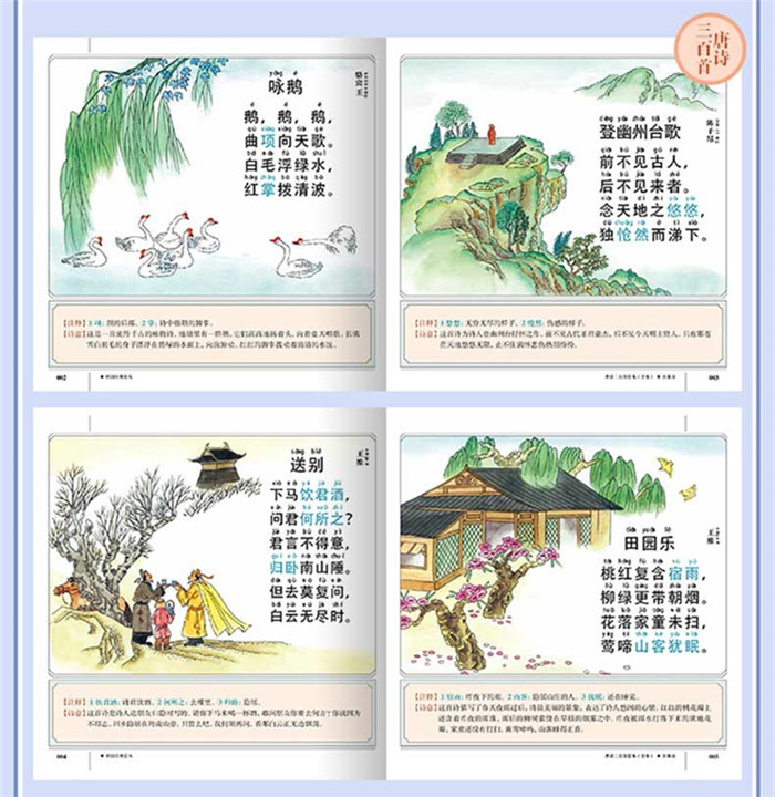 这是一套专为学龄前儿童和低年级的小学生打造的中国古典文学绘本,共16册。本套书精选经典的情节,采取连环画的形式重新演绎,以期通过这种图文呼应的阅读方式减轻孩子的阅读压力,帮助孩子们更直观地理解原著。《唐诗绘本》本书精心选编了300首广为传诵的唐诗,并以精美的插画表现文字内容,帮助孩子理解唐诗所表达的具体意思。