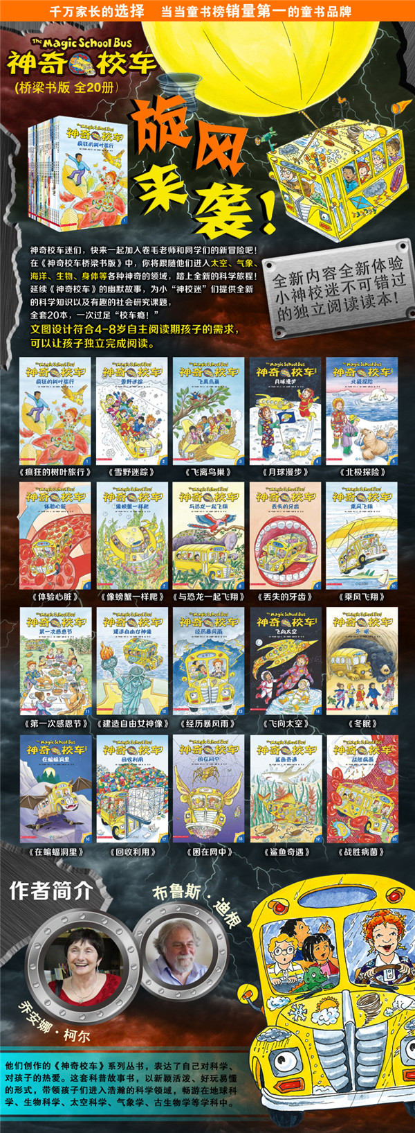 神奇校车迷们,快来一起加入卷毛老师和同学们的新冒险吧!在《神奇校车桥梁书版》中,你将跟随他们进入太空、气象、海洋、生物、身体等各种神奇的领域,踏上全新的科学旅程!