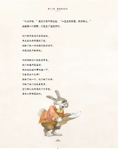 《爱丽丝漫游奇境》被公认为现代童话的奠基之作,作品在一个怪诞的故事里点燃机智和幽默。从爱丽丝掉进兔子洞那一刻起,美妙如梦的冒险随之展开,抽水烟的毛毛虫、坏脾气的老鼠、咧着嘴笑的猫脸让人过目难忘,怪诞与幽默的组合俘获一代代老少读者的心。其中的经典桥段、著名角色和词语早已融入文化史,常读常新,并不断为流行文化提供经典的养料。