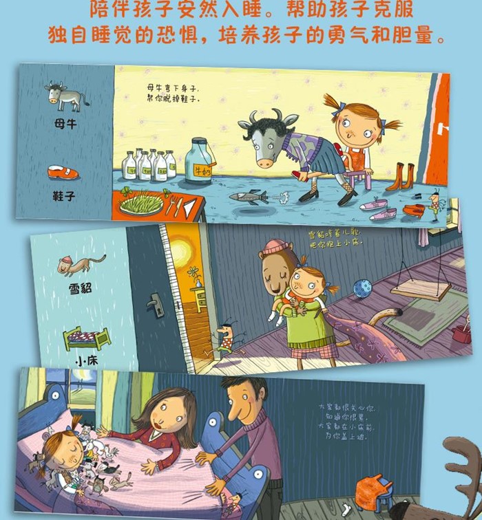 马儿为你煮面条,公牛陪你弹钢琴,公鸡帮你刷牙齿……在一天的玩耍之后,回到小床睡觉的你,知道是谁在你的小床前陪伴你入睡吗?
