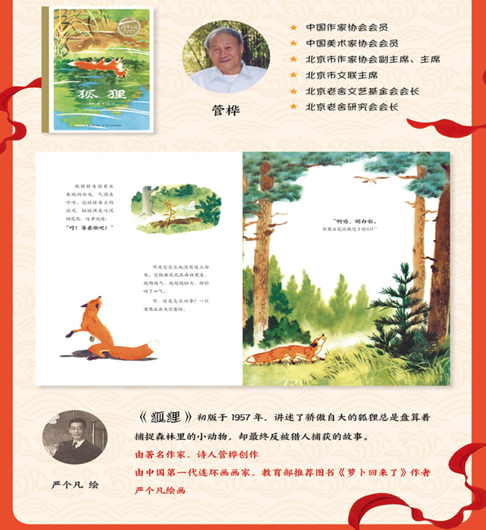 该书是我国著名作家,诗人管桦先生的一篇童话,讲述了骄傲自大的狐狸总是盘算着捕捉森林里的小动物,却最终反被猎人捕获的故事。该书是我国著名作家,诗人管桦先生的一篇童话,讲述了骄傲自大的狐狸总是盘算着捕捉森林里的小动物,却最终反被猎人捕获的故事。