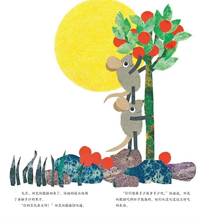 ☆《小黑鱼》《田鼠阿佛》作者李欧·李奥尼新作。两只田鼠和一棵会说话的树,带孩子感受四季之美和不寻常的友情。 ☆ 冬天,一对田鼠双胞胎在雪中散步,认识了一棵叫伍迪的树。之后,田鼠双胞胎每个月都来看望伍迪。 三月抽条,四月发芽,五月开花,六月长满绿叶……伍迪每个月都有要忙的事情。 四季流转,三个好朋友的情谊也越来越深。一个关于时间和友情的动人故事,带孩子感受四季和时间之美。