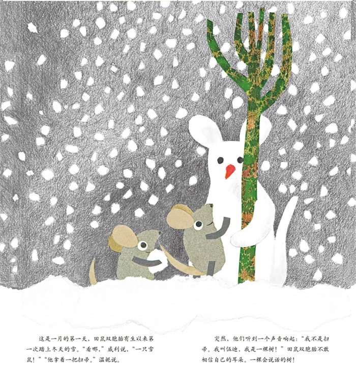 这是一月的第—天,田鼠双胞胎有生以来第—次踏上冬天的雪。 “看那儿!”威利说,“一只雪鼠!” “他拿着一把扫帚。”薇妮说。 这时,一个声音响起:“我不是扫帚。我叫伍迪,我是一棵树!” 田鼠双胞胎不敢相信自己的耳朵。一棵会说话的树! 接下来,不管刮风还是下雨,田鼠双胞胎每个月都来看望伍迪。 随着四季流转,伍迪发芽、开花、结果……三个好朋友的友情也越来越深。 ☆《小黑鱼》《田鼠阿佛》作者李欧·李奥尼新作。两只田鼠和一棵会说话的树,带孩子感受四季之美和不寻常的友情。 ☆冬天,一对田鼠双胞胎在雪中散步,认识了一棵叫伍迪的树。之后,田鼠双胞胎每个月都来看望伍迪。 三月抽条,四月发芽,五月开花,六月长满绿叶……伍迪每个月都有要忙的事情。 四季流转,三个好朋友的情谊也越来越深。一个关于时间和友情的动人故事,带孩子感受四季和时间之美。 适读人群 :3-6岁