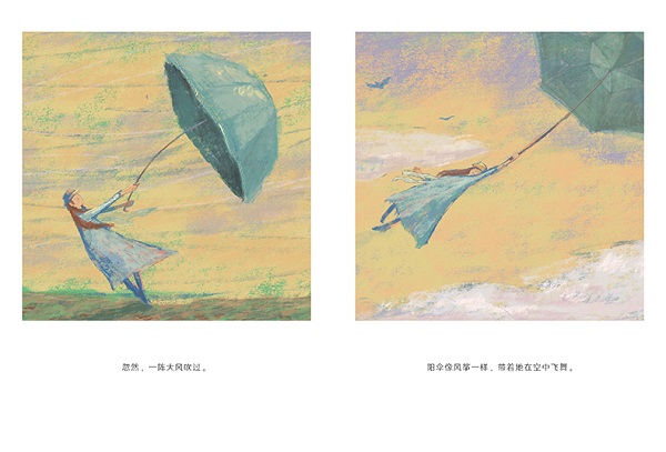 夕阳洒落在阳伞上,模糊了卡蜜儿的脸庞。眼前的景色,她觉得既熟悉又陌生。一阵大风吹过,阳伞带着卡蜜儿飞上空中、又落入池塘。跟随着阳伞的指引,她来到了一个熟悉的地方,终于,遇见了那个熟悉的人……