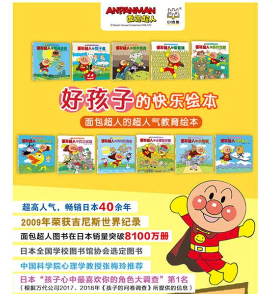 面包超人连续12年登上日本“0-12岁孩子心中*喜欢的角色大调查”榜单。