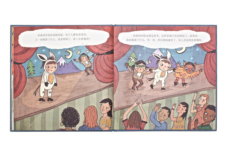 这套绘本每本册子的体例一致,开头介绍一种具体的情绪表达,接下来在左侧页面描绘引起这种情绪反应的场景,右侧页面提出相应的解决办法。每本书介绍了八种小朋友最容易遇到的场景,书后还附有英国教育专家给家长的建议,非常适合亲子共读。刘瑜老师的译文生动活泼,很贴合小孩子的心理。书中的插画为每一个场景做了具体展示,在家长朗读的同时方便小朋友理解。