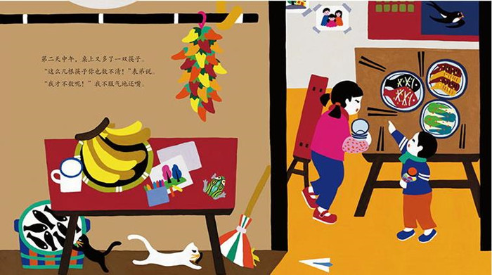 这是一本以上海非遗艺术金山农民画为特色,将中国传统民俗文化、当代儿童生活现状、儿童的想象力和真情实感融为一体的图画书。 故事发生在元宵节将至未至之时,父母已离家外出打工,受到外公外婆的民俗观念“多了筷子有客来”的影响,姐弟俩展开一场你追我赶的多放一双筷子的游戏,想象力在纸面飞翔,一个又一个的“客人”被筷子引来,孩子对父母的思念之情在翻页中奔涌前行,多放的筷子最终是否迎来了心中盼念的人呢?答案随着金山农民画描绘的民俗生活场景徐徐揭晓。 《多一双筷子》以家为核心,以筷子为故事线索和情感寄托,画面设计别具一格,情节安排出乎意料,是关于团圆和亲情的中国童年主题故事,也是儿童天然淳朴的乐观、宽容和豁达的精神状态的生动表现,同时,对关注留守儿童情感世界的呼吁也跃然纸上,引人深思。