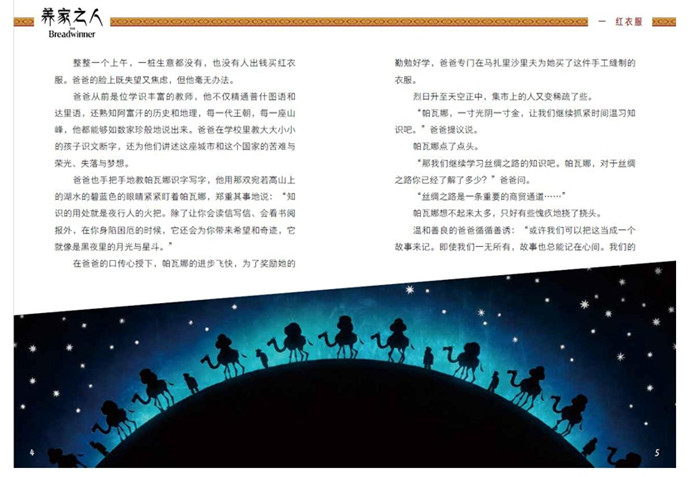 本书根据全球超强口碑及受欢迎动画工作室卡通沙龙制作的动画长片《养家之人》改编而成。11岁的阿富汗女孩帕瓦娜一家生活在塔利班的严酷统治之下,塔利班禁止任何女性在没有成年男性的陪同下外出。帕瓦娜的爸爸因教女孩认字的罪名被抓进监狱后,一家人的生活陷入困顿中。危难时刻帕瓦娜剪去头发,装扮成一个男孩,到集市上代人读信写信、购买食物,成为小小的养家之人。帕瓦娜还能见到爸爸吗?这一家人的命运将会怎样?