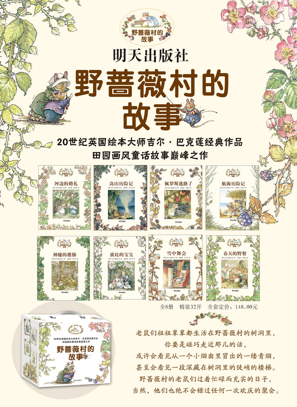 野蔷薇村的故事 20世纪英国田园画风童话故事代表作 一个令人向往的理想家园, 一群和平、友善、乐观的老鼠, 一件件温馨、感人的日常故事。 欢迎你走进野蔷薇村,和小鼠们一起共度欢乐时光。