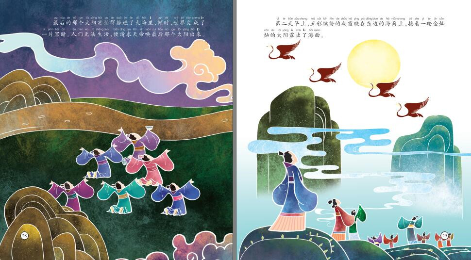 本丛书选取十个中国经典神话故事,由国内一线插画师联袂打造,展现给读者一幅幅古朴优雅的神话画卷,有浓浓的中华艺术美。这套绘本的特色:1.水墨画和版画。以《猴子捞月》为例,每一幅都美得不要不要的,猴子们的表情也都刻画得非常生动。*可以裱上画框,挂在自家墙上。浓郁的中国风使这本书区别于市面上其他绘本。2.无需会认字,图画本身已经在讲故事。即使孩子不识字,仅靠“读”画面,也可以读出一个大意。这套绘本正是如此。而等到孩子上小学后,用这个注音版本的绘本来识字认词也是极好的。3.故事情节活泼有趣,符合孩子们认知新事物的过程。看到月亮掉进井里了,猴子们首先是想办法去把月亮捞起来,你拉我的腿,我拽你的尾巴。后面却发现月亮一捞就碎。类似猴子们齐心协力去捞月亮这样有趣的情节,肯定能引起小家伙们的共鸣。
