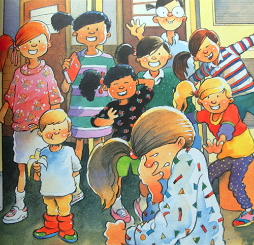 有一天,斯蒂芬妮让妈妈帮她扎一个独一无二的马尾辫,来到学校后,所有的孩子都笑话她的马尾辫太丑了,但是第二天却发现所有的女孩子都扎上马尾辫……第三天,斯蒂芬妮换了发型,同样的评论,第四天大家却又是同样的模仿……直到第八天,斯蒂芬妮忍无可忍,大声的宣布“明天来的时候,我……我要剃光头!”于是到了第九天……