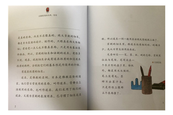 系列共包含7本书,分别是《京剧中的人物》《京剧中的脸谱》《京剧中的交通工具》《京剧中的兵器》《京剧中的风雷雨雪》《京剧里用的东西:切末》《京剧中的舞蹈》。作者不会刻意解释“生旦净丑”“唱念做打”等等枯燥的术语概念,而是从孩子们熟悉的日常讲起,将晦涩难懂的京剧变成了与孩子衣食住行相关的活动,让孩子真正亲近京剧的文化内涵。此外,作者手绘的大量插图,皆极富神韵,不仅能帮助孩子看见京剧的门道,还能让他们感受京剧“有声皆歌,无动不舞”的美。
