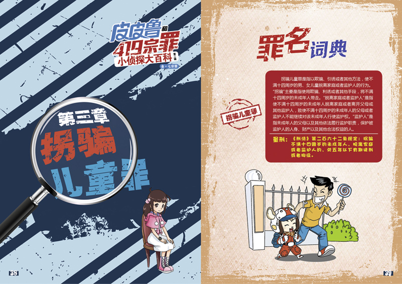《皮皮鲁和419宗罪小侦探大百科》系列丛书为孩子们准备了有趣的法律知识,每一章十个栏目,想象十足、趣味十足的为孩子们讲解法律知识。孩子们通过漫画故事,生动的了解犯罪的心理和过程;通过阅读百科栏目,了解法律常识;舌战即辩论让孩子们学会从不同的角度思考问题;大法官则是为孩子们量身定制的模拟法庭,让孩子们自己当法官,判断是非对错;有趣的侦探游戏还可以锻炼孩子们的逻辑推理思维,给孩子们带来快乐而真实的体验。