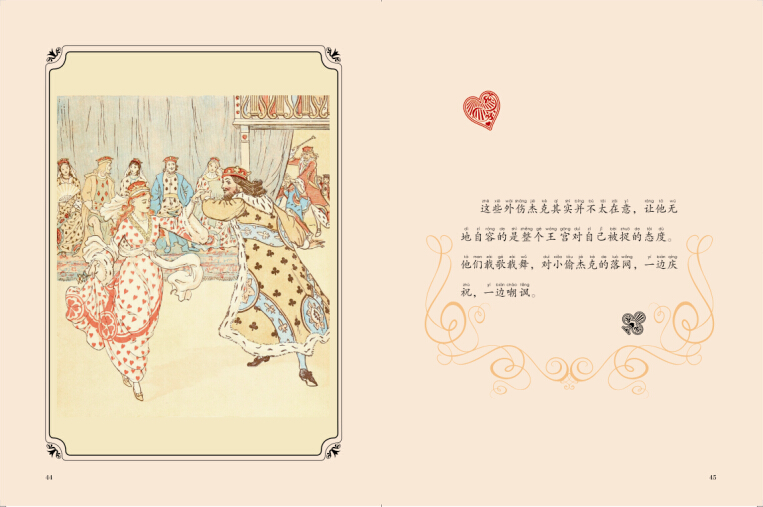 本书讲述了一个发生在奇幻的扑克王国的故事。故事中红桃王后得到了一本烹饪的书,她因此做出了美味的水果馅饼。国王、小王子们和小公主们都很喜欢水果,扑克王国所有的人都想尝尝王后做的水果馅饼。有一天,国王要带着王后、小王子们和小公主们去郊游,红桃杰克忍不住诱惑偷了王后的水果馅饼。果然,国王回去后发现了真相,他召见红心杰克,重重地处罚了他。小公主和小王子救了红桃杰克,他觉得自己的行为是不对,就取回了藏在郊外的馅饼,并决心改过自新。