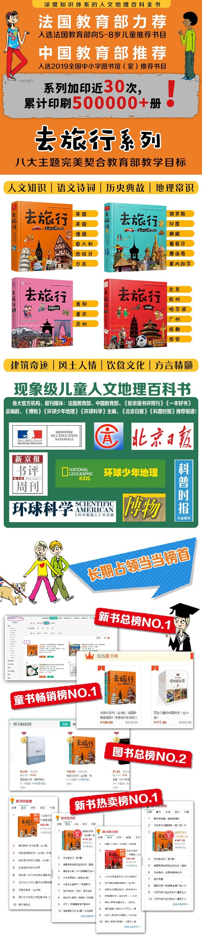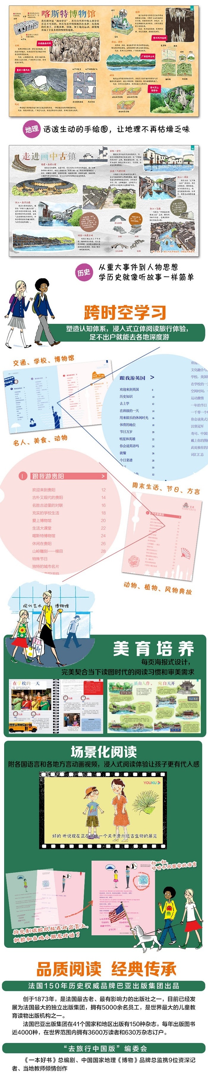 《去旅行》系列从各地小朋友的日常生活入手,像朋友一样介绍自己的日常生活,以及所居住地区的方方面面。632页内容让小读者进行一场关于12个国家和6个中国特色城市的历史、地理、美食、学校、娱乐、体育和文化的深度知识体系发现之旅,兼具传统性和现代性。