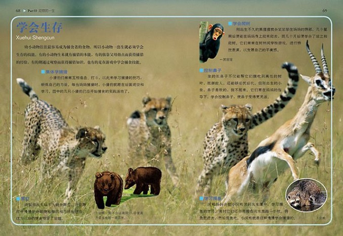 2、 图文并茂,生动而有趣。根据美国国家地理学会推荐孩子了解的动物名单选取内容,并插配大量精美的手绘插图,让动物们的生活与繁衍变得直观而生动。