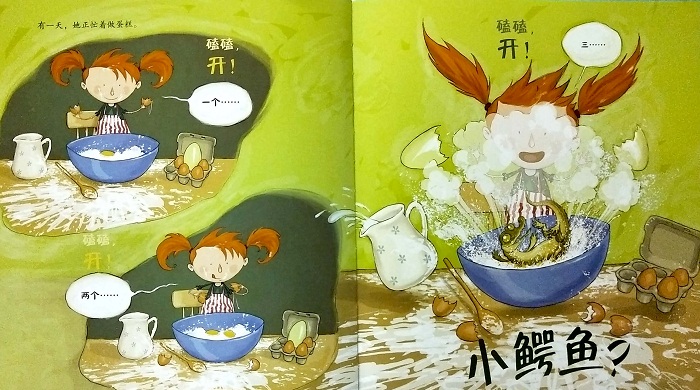 《我和鳄鱼娃娃》阿莱在做蛋糕的时候从一个蛋里打出来一只小鳄鱼。但问题来了,家里人不让她养宠物,她只能把鳄鱼打扮成洋娃娃的样子。但长大的鳄鱼开始闯祸,于是镇上的人们要求阿莱把鳄鱼处理掉。阿莱该怎么办呢?