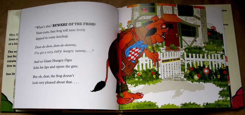 Sweet old Mrs. Collywobbles lives on the edge of a big, dark, scary wood, so it’s a good thing that she has a pet frog to protect her. Too bad for the Greedy Goblin, the Smelly Troll, and the Giant Hungry Ogre, who don’t take this little amphibian seriously (GOBBLE)!