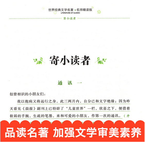 冰心(1900—1999),原名谢婉莹,笔名冰心,取“一片冰心在玉壶”之意。冰心是现代著名女作家、诗人、散文家、儿童文学作家、翻译家、社会活动家,被誉为“中国儿童文学奠基人”。 《寄小读者/学生新课标推荐阅读·世界经典文学名著(名师精读版)》收录了作者在不同年代写给小读者的通讯,包括《寄小读者》《再寄小读者》《三寄小读者》的全部篇目,以及《山中杂记一遥寄小朋友》等散文名篇。作品文笔清丽纯净,感情浓厚,表现出作者对小读者的喜爱和关切,以及对生活、生命的无限热爱。