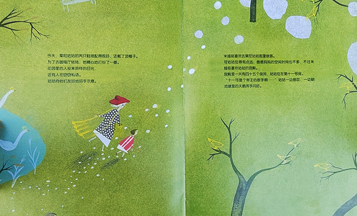 莫妮卡·菲特著、伊莎贝尔·平绘的图画故事《莱尼姑姑是公主》讲述了: 莱尼姑姑住在疗养院里,米娅常去看望她。莱尼姑姑相信自己是个高贵的公主,住在金碧辉煌的宫殿里。这里有白衣飘飘的仙女,也有给人灌辣椒水的巫婆;有举行加冕典礼的教堂,还有高朋满座的餐厅。莱尼姑姑的宫殿真热闹啊,不过,好像只有米娅一个人,愿意走进莱尼姑姑的世界……