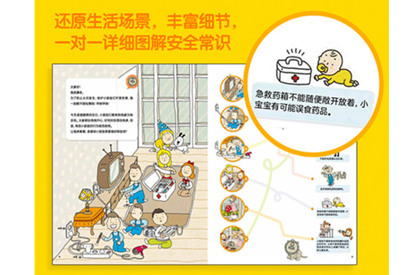 趣味漫画+每本超过60个生活场景模拟,涵盖了日常自我保护与应急安全知识,生命安全、生活安全、健康卫生以及环境教育等方面。