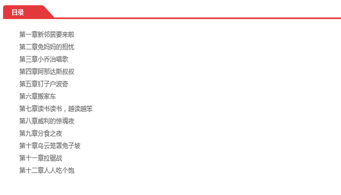 《兔子坡》是中文分级阅读文库k2中的一本中文分级阅读文库由亲近母语和果麦联合发起,共有k1-k9九个级别罗伯特·罗素的《兔子坡》是美国纽伯瑞儿童文学奖金奖作品,故事创造了一个完整、鲜活、趣味盎然的世界:新邻居要来啦!大房子里要住进新的一家人了!兔子坡上的小动物们都兴奋地等待着新邻居的出现,期盼着能有好事情发生。新邻居会带着狗和捕鼠夹吗?会有淘气的男孩子出现吗?他们会仔细地栽种庄稼吗?当一切水落石出,他们也许都会大吃一惊吧。。