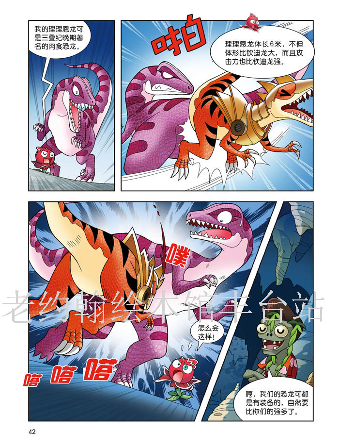 2、以多格漫画的形式,讲述植物与恐龙一起冒险的故事,情节跌宕起伏,引人入胜;知识点植入自然巧妙、不教条,且经过专家严格审订,难度适中,小读者在轻松读故事的同时,还能了解准确的恐龙知识。