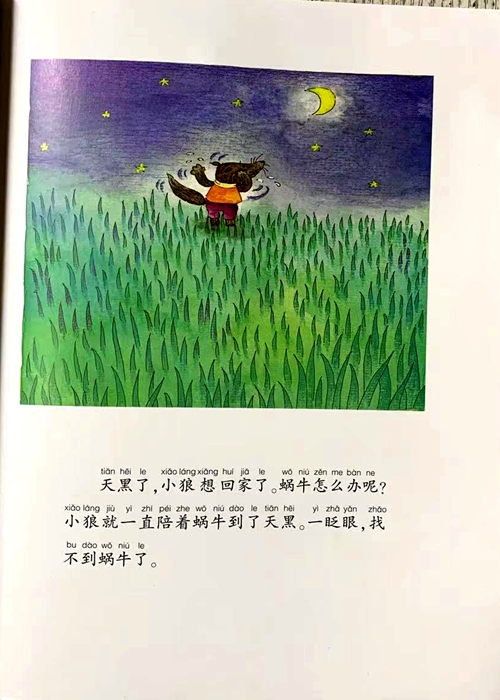 天黑了,小狼想回家了。蜗牛怎么办呢?