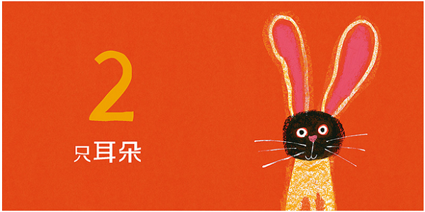 一个肚子(熊)、二只耳朵(兔子)、三个点(虫子)、四个翅膀(蝴蝶)、五根手指(猴子)……用充满艺术气息的画面吸引孩子观察动物的身体特征,帮助他们在亲子互动中认识从1到10的数字。