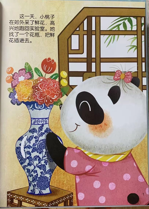 这一天,小桃子在郊外采了鲜花,高兴地跑回实验室。她 找了一个花瓶,把鲜花插进去。