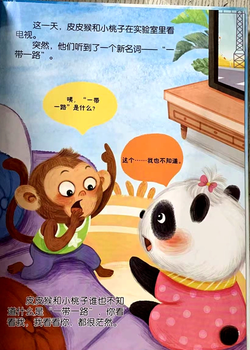 这一天,皮皮猴和小桃子在实验室里看电视。 突然,他们听到了一个新名词一带一路”。
