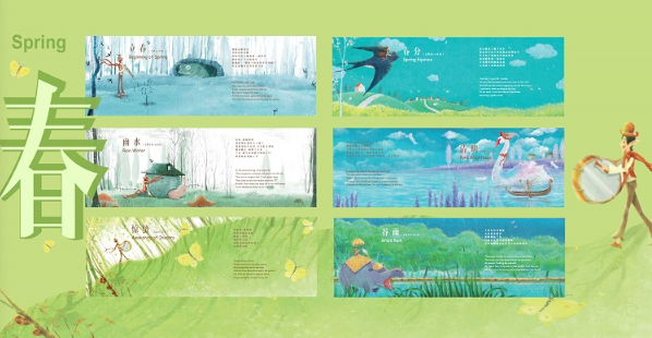《二十四节气童话》绘本由中国插画师、漫画家乔乔创作,法国时尚设计师、插画家、翻译家美珊(Bérénice Zandonai)翻译,“晓华亲子英语”公众号平台的人气小主播Emma小朋友进行中英文配音。绘本画面美丽清新,故事情节充满童趣和想象,从主人公的视角自然地解读了每个节气的特点,和插画部分交相呼应,更加体现了中国24节气的优美。
