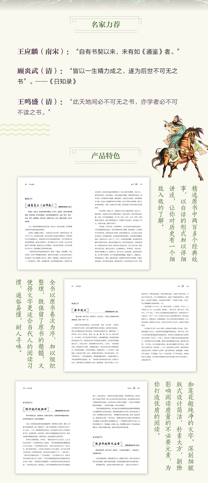 《资治通鉴》是我国古代*部编年体通史,跨16个朝代,囊括1362年的史事,呈现政局盛衰图景,刻画为政治国、待人处事之道。与司马迁的《史记》并列为中国史学的不朽巨著,所谓“史学两司马”。宋朝史学家王应麟评价说:“自有书契以来,未有如《通鉴》者。”
