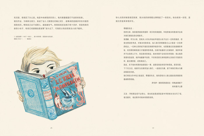 同一系列的《发明零的孩子》与《追逐潮汐的孩子》,均为带有科普基因的文学作品,旨在帮助小朋友带着好奇心轻盈地跨过知识的艰涩。与前两本油画般质感的画作不同,意大利插画家卢卡·卡伊米为本书绘制的插图以丙烯和粉彩为主,色彩明快、淡雅,笔触脉络清晰可见。为体现画作特点,本书采用了一款新的特种纸。作者恩里科·布里齐为意大利著名作家,著有多部小说及旅行文学作品。