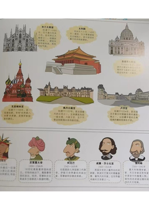 专为孩子们编制的一套地图上的世界简史,精装5册,画风轻松趣味横生,让孩子们学历史不再枯燥。每个历史时期都涵盖三个视角,画在地图上的时局图宏观地展现历史视角,让孩子们从地图上学历史,也能增加世界地理知识储备;全景图展现历史的横截面,细化到超大全景构图的人文生活场景,让孩子们了解人文风俗、城市变迁等等历史细节:时间线和科技文化篇,梳理了清晰的历史脉络,并且详细地介绍了人文科技。这本书不仅能让孩子们爱上世界历史,而且将历史考点潜移默化地融入其中,趣味和实用兼备。