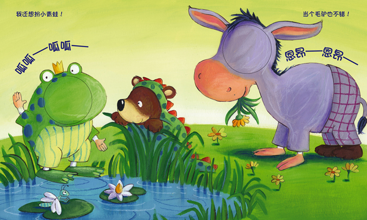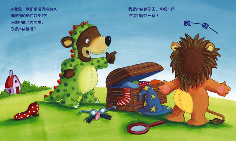 你来演,我来听系列 全3册 厚卡板 配3个可爱手指偶HABA亲子互动手偶书,来自德国,精心设计,陪伴高品质亲子时光假扮游戏开始啦,小老鼠和他的好朋友小熊希望扮成别的小动物,扮成谁好呢?扮成狮子,痛快的大吼一声“嗷——嗷——”有没有吓一跳啊,哈哈!要不就扮成公鸡吧,头顶鸡冠“喔喔喔”打鸣,起床喽,太阳晒屁股喽~其实扮成小狗也不错,“汪汪,汪汪”骨头好好吃呀!这本图画书配有小老鼠手指玩偶,套上手指玩偶,穿过每页书的小洞洞,和小熊一起大变装!