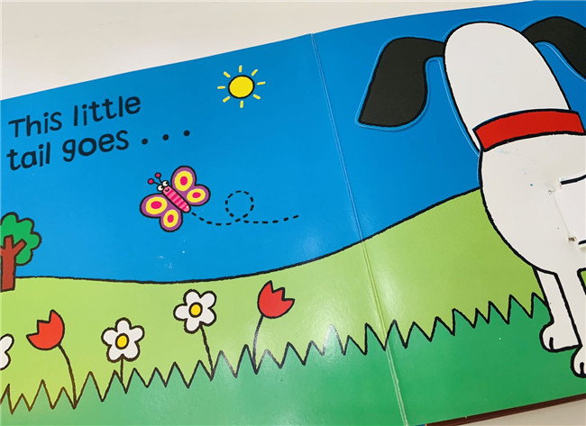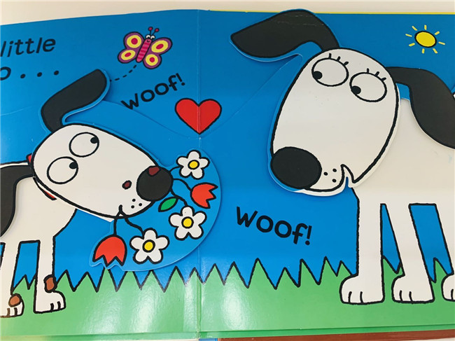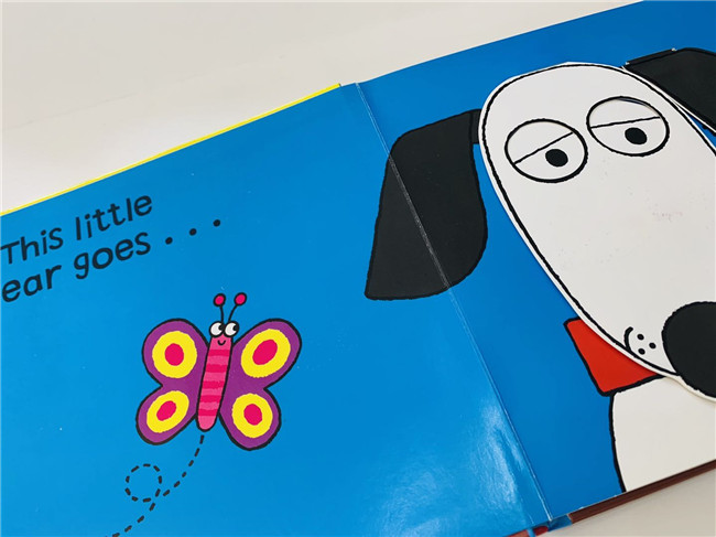 这一本操作绘本,拉伸旁边的小机关Puppy的耳朵会动,它的眼睛鼻子会动,尾巴也会动.....
