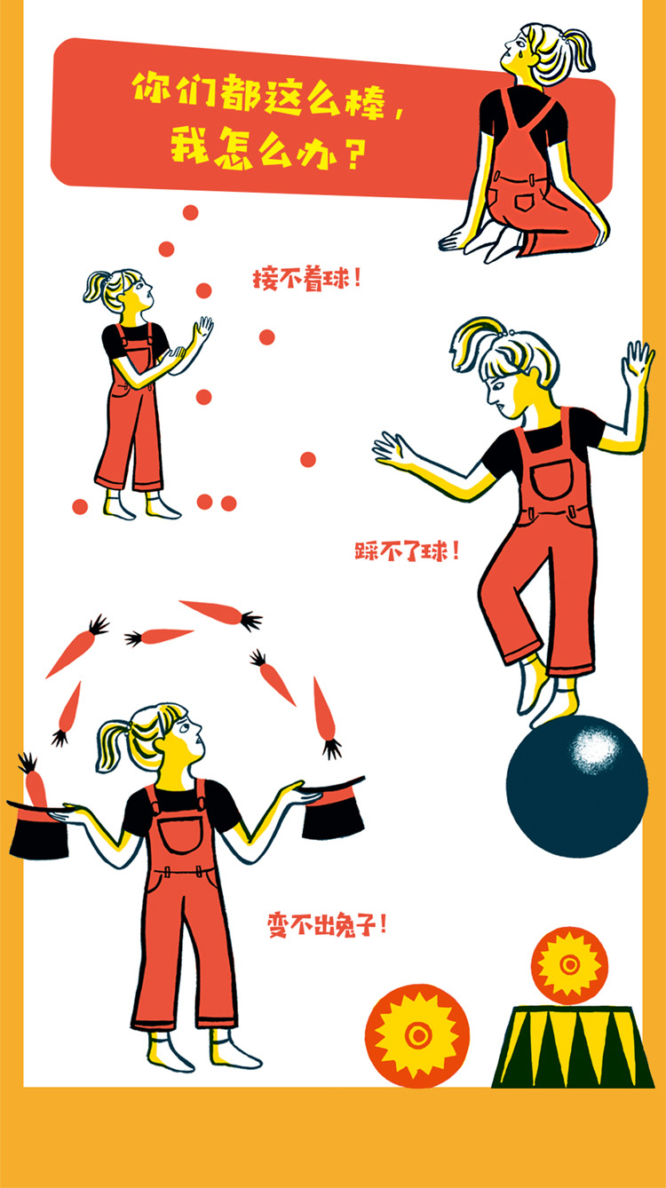 有个小女孩,她的家族十分特别。她的家人们都在马戏团工作,并且每个人都有自己的独特本领。小女孩很努力地学习家人们的绝活儿,却总也不成功。这时妈妈告诉小女孩,她也有自己独特的才能,那就是给大家带来欢乐,小女孩最终会表演什么拿手好戏呢?本书以小女孩的视角,触及孩子成长中容易遇到的自信心问题,通过生动的故事,探讨了如何帮助儿童自信成长、处理自我与别人的关系。相信本书对关心儿童心理健康的父母们会有所帮助。