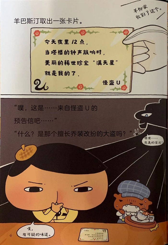 打扮抢眼又精于变装的怪盗U寄出了预告信,这次被他看中的世界上zui美的宝物,是羊柳家的「星空的闪烁」。由于羊柳家的主人不轻易相信任何人,即使警察也不例外,因此他的女儿星夜小姐要管家私下寻求屁屁侦探的协助。接受请讬的屁屁侦探,和助手布朗一同前往那栋立于临海悬崖上的古老宅第。这间有着许多房间的豪华宅第,却仅仅住了五个人,感觉就算是怪盗U再怎么精于变装,也很难混入吧……。但是随着怪盗U预告的午夜十二点愈来愈近,羊柳家先是收到奇怪的包裹,接着管家突然失踪(莫非是遭怪盗U绑走?),然后只有羊柳先生和他女儿星夜小姐才知道藏在哪里的宝物「星空的闪烁」,居然好像真的不翼而飞了……难道这次怪盗U真的得逞了吗?他究竟是怎么进入羊柳家取得宝物的?……千万不要错过屁屁侦探和怪盗U两人「礼尚往来」的精彩斗智对决!