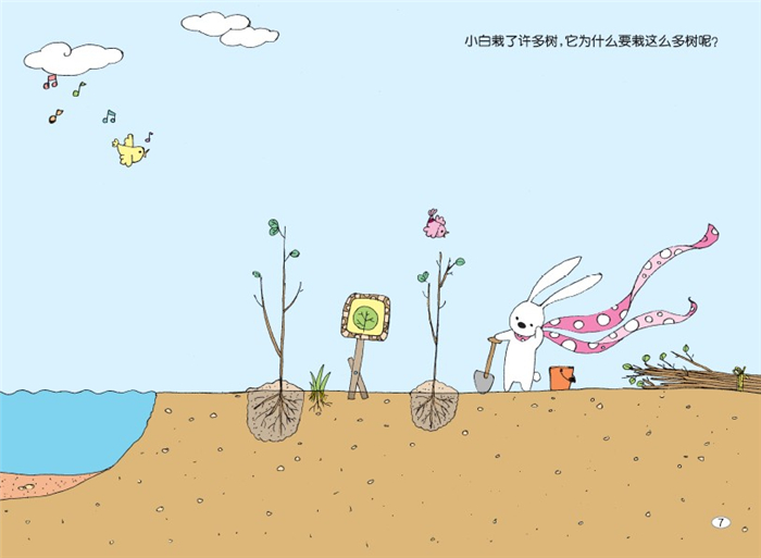 3.主人公兔子小白造型天真可爱,画风清新明亮,故事内容贴近孩子生活。