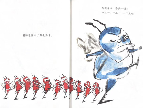 每一只蛐蛐都想争No.1 有一天,蛐蛐们去了学校。那真叫一个乱哄哄。 班主任老师带领它们练习队列,每只蛐蛐只顾自己争No.1,闹得一团糟。 眼看,蛐蛐一班和蚂蚁二班就要举行搬木头比赛了
