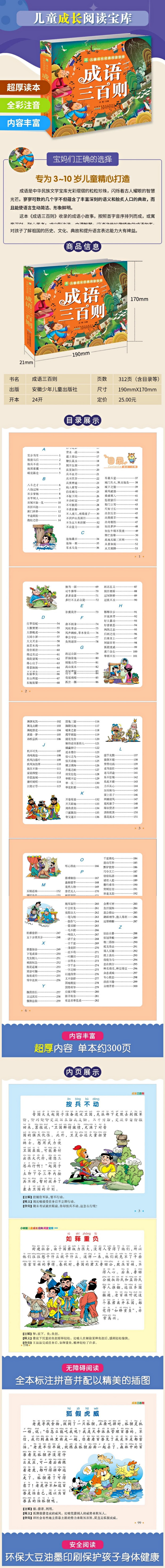 《成语三百则》是“小树苗儿童成长经典阅读宝库”系列中的一本。该书主要针对3~8岁孩子,精选最经典、最受欢迎的成语故事。这些成语故事尊重孩子的阅读兴趣,故事短小生动,语言通俗易懂,配上精美的插图,使原本单调而冗长的成语故事变得趣味横生。此外,该书采用全文注音形式,可供孩子从亲子共读向自主阅读过渡。引人入胜的成语故事、清晰易懂的成语释义,让孩子从中感受传统文化的精髓,扩大知识面,从而从中受益。