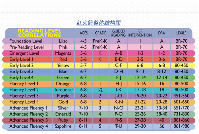 这套书很“重”,是一整套体系,仅盖世引进的前两个阶段加起来就有318本,可谓体量庞大。同时,这书也很“轻”,因为每册书只有16页,轻薄短小,在加拿大的学校,一节课就能完成一本,很容易实现“单个突破”! 红火箭分级阅读系列从大写字母开始,从每页上只有一个词、两个词,到每页上有一句话、两句话,这种难度渐进设计,很适合非母语国家的孩子用来学习英语。它的进阶体系符合蓝思分级系统,能带着孩子通过“量”的积累实现“质”的突破。最重要的,这套书的每一级别都是故事书和科普书5:5配比,兼顾趣味性、艺术性和科学性,能让孩子在学英语的同时掌握大量的生活百科知识!…………