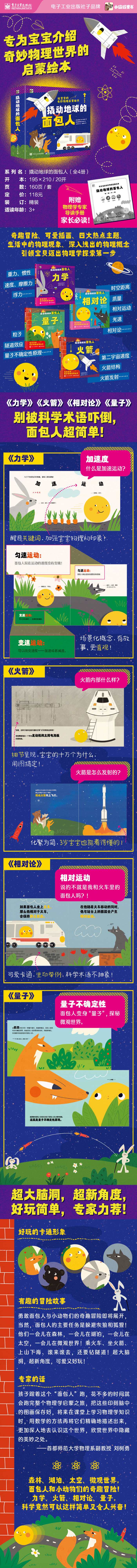 《撬动地球的面包人》,专为宝宝介绍奇妙物理世界的启蒙绘本。勇敢面包人与小动物们的奇趣冒险即将展开!一会儿在森林,一会儿在湖泊,一会儿飞入太空,一会儿钻进微观世界!为了逃离狐狸的魔爪和狼的追击,面包人就要利用各种物理学知识。超有趣的故事、生动可爱的插画、生活中的物理现象……本套丛书共四本,一网打尽力学、火箭、相对论、量子――备受读者关注的4个主题内容,涉及重力、惯性、速度、加速度、摩擦力、浮力、火箭结构、火箭发射、质量、时空、距离、光速、相对运动、隧道效应、量子不确定性原理等,科学从来没有这样简单又令人兴奋!